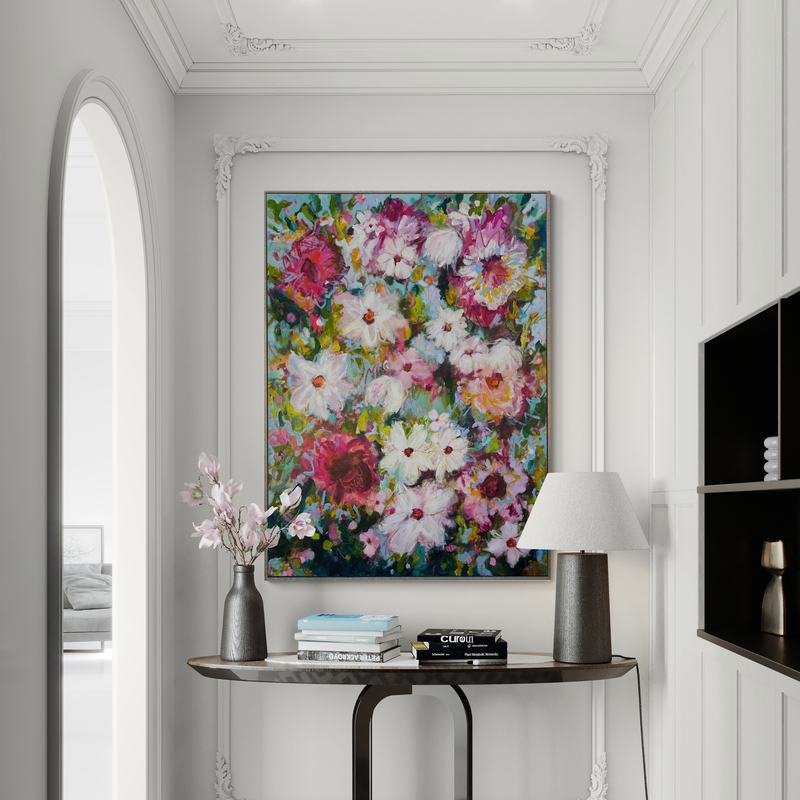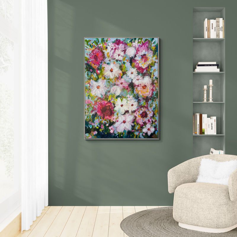 Sydney born artist Patricia Cooke moved to the tranquil green of the Hunter Valley in 2017. After completing a number of art studies she was unable to continue painting seriously due to the constraints of work and family. Now free to unleash her artistic bent and surrender to the passion of painting, her gloriously colourful abstracts are mostly with a botanical or sometimes landscape theme.